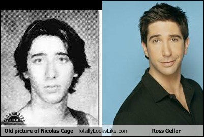 Nicolas cage's face on ross geller's body—as in ross geller, the character from.